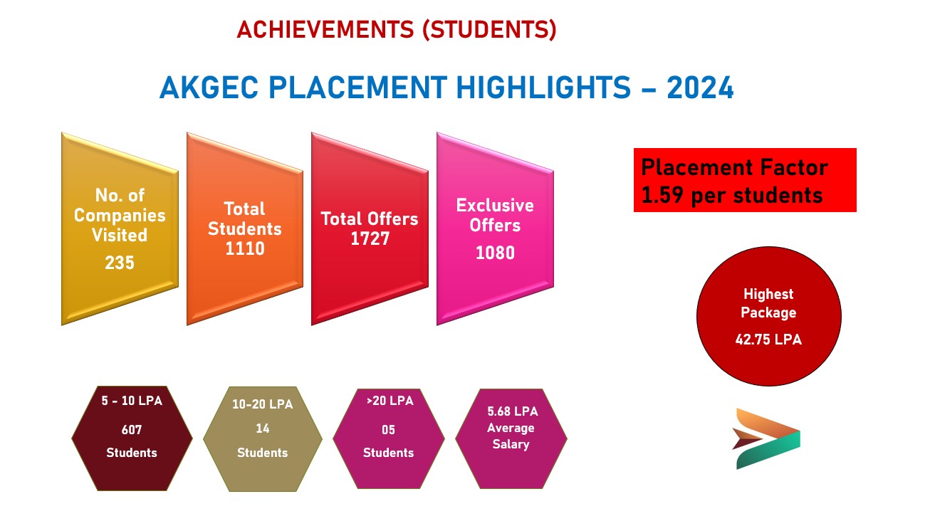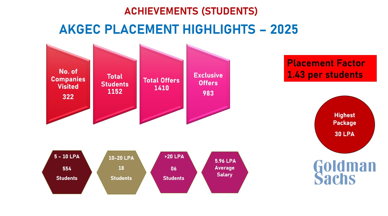 Ajay Kumar Garg Engineering College (AKGEC) offers four year under graduate B.Tech course in all major engineering branches, two year post graduate M.Tech course in four engineering branches and two year post graduate MCA course.